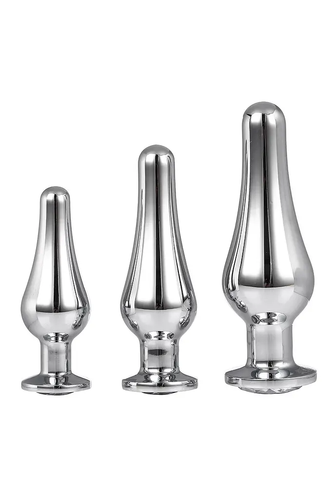 Три анальні пробки з набору Gleaming Love Pleasure Plug Set зроблять із новачка експерта у питаннях анальних задоволень! Найменша із трьох сріблястих пробок має компактні габарити, тому підійде навіть для новачків. Щоб підготувати тіло до проникнення чогось великого, можна використовувати всі іграшки з набору поступово, переходячи від малої пробки до найбільшої. Анальні пробки виконані з безпечного для здоров'я металу, що не провокує алергії та не викликає подразнення. Всі вони мають ергономічну форму, розроблену для максимально комфортного введення, а також вузьку ніжку з обмежувачем для зручного та безпечного розташування усередині. Не забувайте про лубрикант, з ним ігри будуть максимально комфортними. А після використання обробляйте пробку клінер для підтримки гігієни. Велика пробка: - довжина: 12.7 см - діаметр 4 см Середня пробка: - довжина: 11 см - діаметр: 3.4 см Маленька пробка: - довжина: 9 см - діаметр 2.9 см