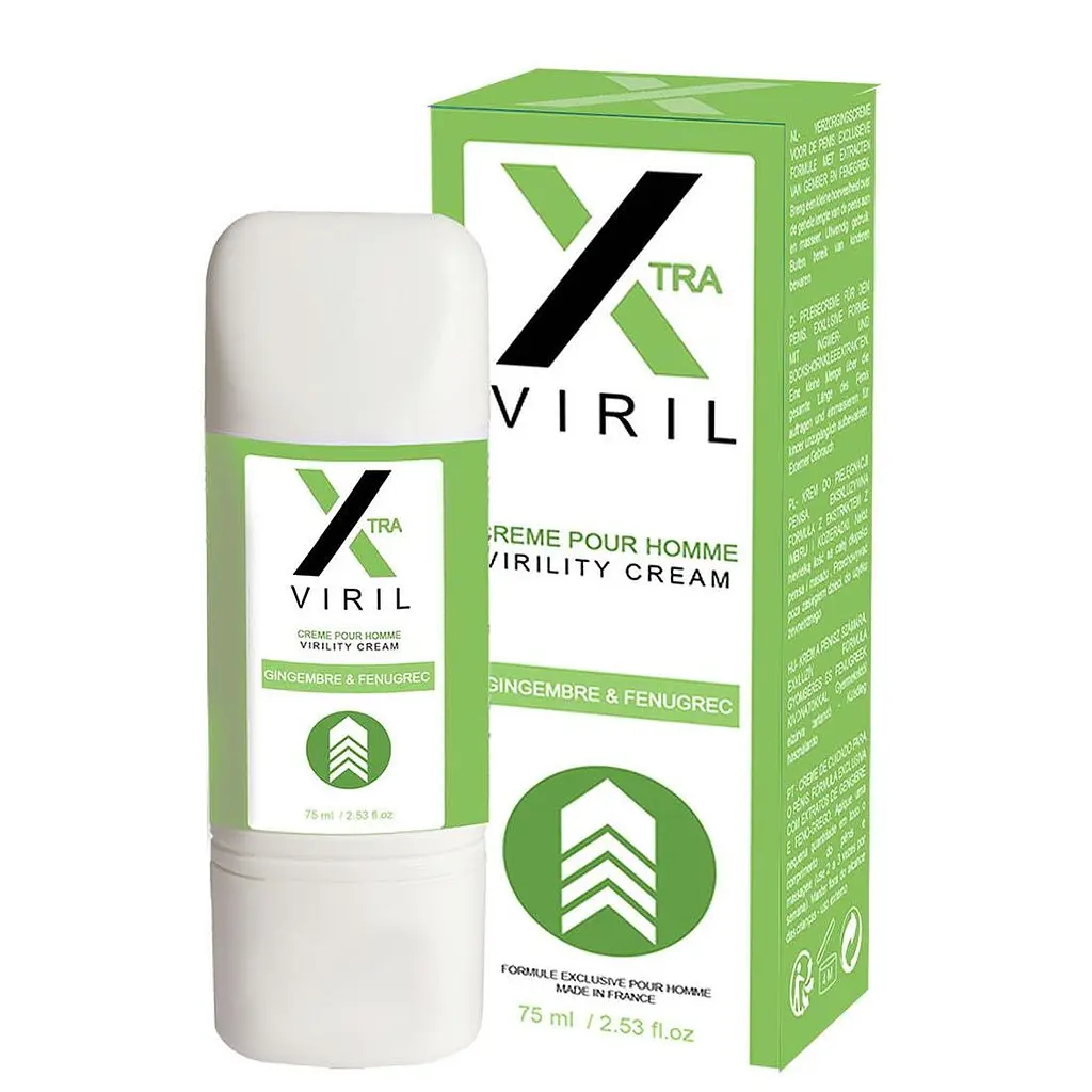 Крем для догляду за пенісом. Допомагає зробити статевий орган більш здоровим і міцним, добре живить шкіру, роблячи її шовковистою на дотик. Крем містить екстракти імбиру та лісового пажитника, що сприяють активному притоку крові до пенісу та збільшенню вироблення тестостерону. Якщо ви любите радувати своє чоловіче его і своїх жінок, то вам варто спробувати революційний крем X Viril, який буде дбайливо доглядати за вашим членом. Шкіра стане м'якою і шовковистою на дотик, а активні компоненти засобу, будуть у мільярди разів збільшувати жорсткість члена при ерекції. Об'єм - 75 мл.