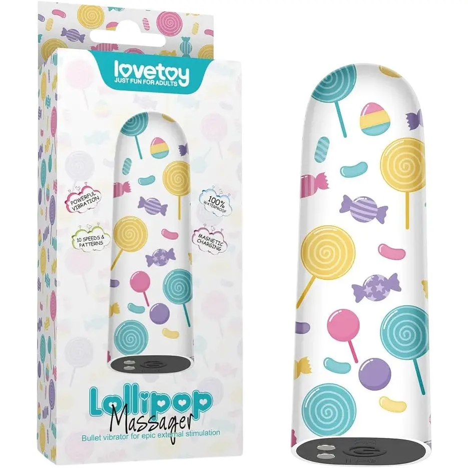 Кліторальний вібратор Lollipop Massager - компактна жіноча секс-іграшка для кліторальних гризунів, яка оснащена 10 режимами вібрації і виготовлена зі забавним дизайном для відведення сторонніх очей.Компактний кліторальний вібратор Lollipop Massager - це чудова невелика секс-іграшка для подорожей та поїздок. Зручна форма і малий розмір дозволять вам носити вібратор з собою в сумочці або навіть кишені, а цікавий забавний декор у вигляді цукерок не дозволяє оточуючим розкрити ваш пікантний секрет. Хто ж ладен вважати, що миленька цукеркова паличка - це не іграшка, а справжній вібратор? Крім того, пристрій досить тихий, щоб непомітно виконувати всі свої сексуальні ритуали.Своєрідний вібратор виготовлений з якісного пластику. До його складу не входять фталати, латекс та шкідливі речовини, тому матеріал є гіпоалергенним і є безпечним для здоров'я. Корпус секс-іграшки водонепроникний.Lollipop Massager має потужний мотор, який надає вам 10 вбудованих режимів вібрації. Перемикати їх можна кнопкою на основі. Акумулятор заряджається за допомогою магнітного USB-кабеля. На повному заряді вібратор зможе працювати близько 1,5 години.Для отримання більш приємних і комфортних відчуттів необхідно користуватися зволожуючим лубрикантом. Після стимуляції вібратор слід обробити засобом для очищення секс-іграшок. - Довжина: 8,5 см - Діаметр: 2,7 см - Матеріал: пластик - Живлення: акумулятор Діаметр від і до: Від 2 до 3 см. Вага, г: 90
