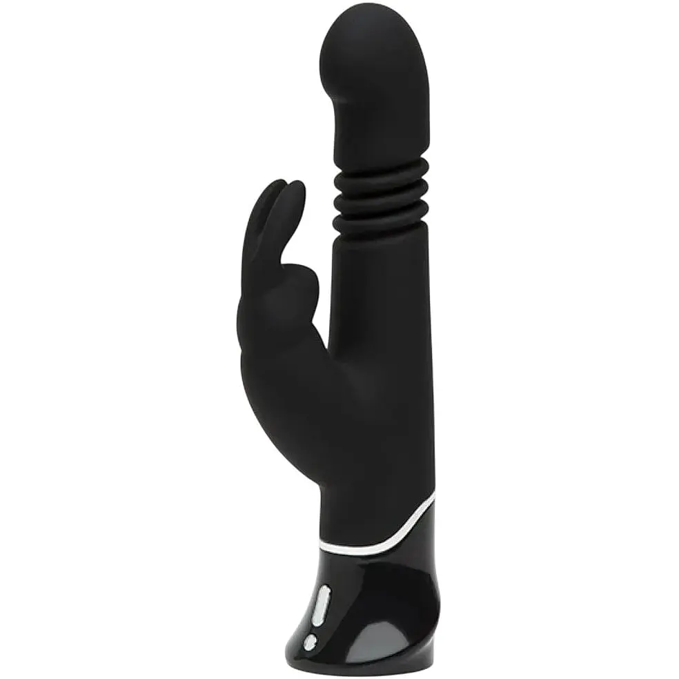 Представляємо Вам rabbit-вібратор Fifty Shades Of Grey Greedy Girl Thrusting G-Spot Rabbit Vibrator, який виконаний із силікону високої якості, бархатистого та гладкого на дотик. Іграшка порадує Вас наявністю двох відростків, що більший - для вагінальної стимуляції, а менший - це виключно кліторальний стимулятор. Ну і виконаний він у вигляді кролика, саме тому у нього можна помітити милі вушка, які і є робочою частиною, що добре передає вібрацію. Слід зазначити, що загнутість основного ствола обумовлена тим, що він просто прагне дістати до заповітної точки G. Так що саме час спокусити долю і піддатися спокусі. Ну а якщо вникати у функціонал більш докладно, то слід зазначити той факт, що це справжнє диво у світі інтим-іграшок має 9 режимів вібрації та 3 швидкості, що відповідають за поступальні поштовхи, так що не пропустіть свій шанс і терміново випробувайте у дії це пристрій для задоволення. Адже влаштовано воно саме так, як Вам потрібно, тому приготуйтеся отримати саме те, чого Ви очікували. Ну і, звичайно ж, не варто замовчувати про такий важливий момент, як водонепроникність, адже тепер Ви можете не просто потішитися з ним у спальні, як заведено в класичних випадках, а пуститися у всі приємні бажання і піти з ним у ванну. Ну а ще іграшка має функцію блокування кнопки включення, так що не бійтеся, що Ваш улюблений вібратор включиться під час подорожі або носіння в сумочці. Настав час, коли з'явилася можливість відчути на собі всі відтінки роботи Fifty Shades Of Grey Greedy Girl Thrusting G-Spot Rabbit Vibrator. - Матеріал - силікон, пластик - Загальна довжина - 22,8 см - Робоча довжина - 11,4 см - Діаметр - 3,6 см - Живлення - акумулятор Для отримання комфортних відчуттів обов'язково придбайте лубрикант на водяній основі. Ну а після розваг промийте виріб у воді та опрацюйте засобом для очищення інтим-виробів. Після чого помістіть у чохол для зберігання. Діаметр від і до: Від 3 до 4 см