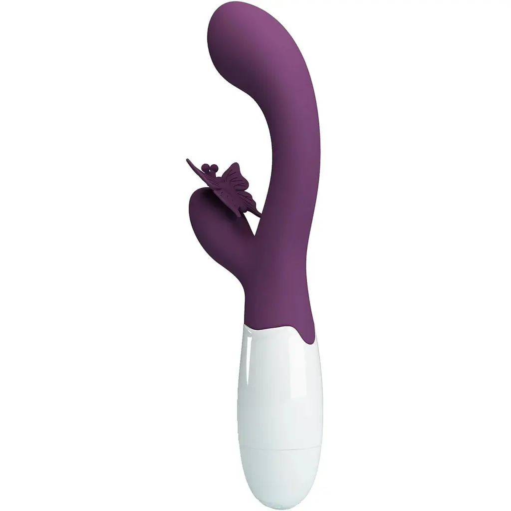 Pretty Love Butterfly Kiss - потужний rabbit-вібратор, який може забезпечити Вам чуттєву стимуляцію вагінальних ерогенних зон, у тому числі точки G, та вібраційні ласки клітора. Rabbit-вібратор Pretty Love Butterfly Kiss - це подвійний вібратор для одночасної вагінально-кліторальної стимуляції, який розроблений з двома робочими стволами та двома потужними моторами. Основний великий стовбур призначений для внутрішньої стимуляції і безпосередньо проникає в піхву. Він має гладку поверхню та вигнутий ствол з розширеною головкою. Така вигнута форма сприяє спрямованій стимуляції точки G. Невеликий бічний відросток у вигляді метелика - це кліторальний стимулятор, який щільно прилягає до клітора та дарує йому свої вібраційні потоки. Таким чином, Pretty Love Butterfly Kiss здатний на подвійну стимуляцію з яскравими та неймовірними відчуттями. Виготовлений вібратор-кролик з якісного, ніжного та дуже приємного на дотик силікону. Матеріал не містить фталатів, не шкодить здоров'ю, не викликає алергію. Оснащений Pretty Love Butterfly Kiss двома потужними двигунами, які пропонують Вам 30 режимів вібрації. Керувати вібрацією можна кнопками на ручці. Працює секс-іграшка на 2 батарейках ААА. Батарейки до комплекту НЕ входять. Для приємніших відчуттів слід користуватися зволожуючим лубрикантом на водній основі. Після використання вібратор необхідно обробити засобом для чищення секс-іграшок. - Довжина: 19,9 см - Діаметр: 3,1 см - Робоча довжина: 10 см - Матеріал: силікон - Живлення: батарейки ААА (2 шт) Діаметр від і до: Від 3 до 4 см