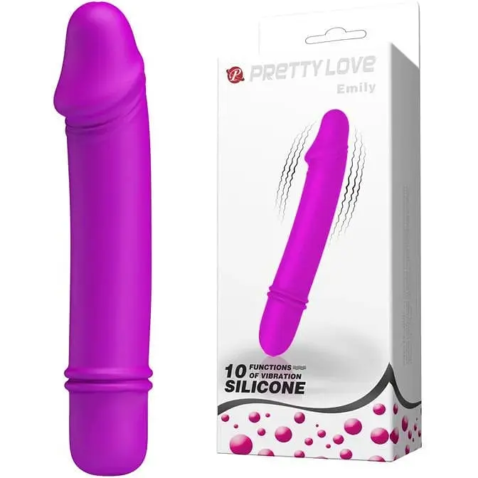 Pretty Love Emily буде ніжним і вірним коханцем стільки, скільки вам забажається. Іграшка виконана з бархатистого матеріалу, невелика і дуже якісна. Матеріал Emily - силікон. Виріб виготовлений з красивою імітацією головки пеніса та з гладким, ніжним стовбуром. У вібратора 10 різних варіантів вібрації, які вмикаються і керуються всього 1 кнопкою на підставці. Іграшка потужна, тиха, невелика за розміром і завжди буде поруч з вами в повній готовності дарувати максимум задоволення. З Emily вам ніколи не буде нудно в ліжку - його продуманий дизайн і висока якість з легкістю занесуть вас у світ, повний захоплюючого задоволення. Іграшка підійде для початківців користувачів. Довжина: 12,7 см, Діаметр: 2,5 см, Матеріал: силікон, Вібратор працює від 1 батарейки AAA. З Emily можна використовувати лубриканти тільки на водяній основі. Після використання вібратора обробіть його засобом для очищення секс-іграшок. Зберігайте в чохлі. Діаметр від і до: Від 2 до 3 см