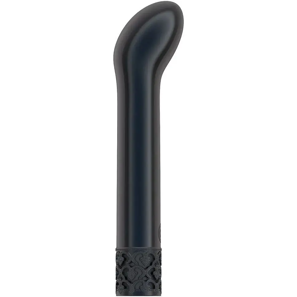 Вібратор Royal Gems Jewel Gunmetal – втілення стилю, елегантності та задоволення. Не треба бути королевою, щоб дозволити собі розкіш цього вишуканого вібратора. Його блискуче металеве покриття надає особливого шарму, а вигнутий кінчик створений для точної стимуляції - ідеально підходить як для зовнішнього, так і для внутрішнього задоволення.